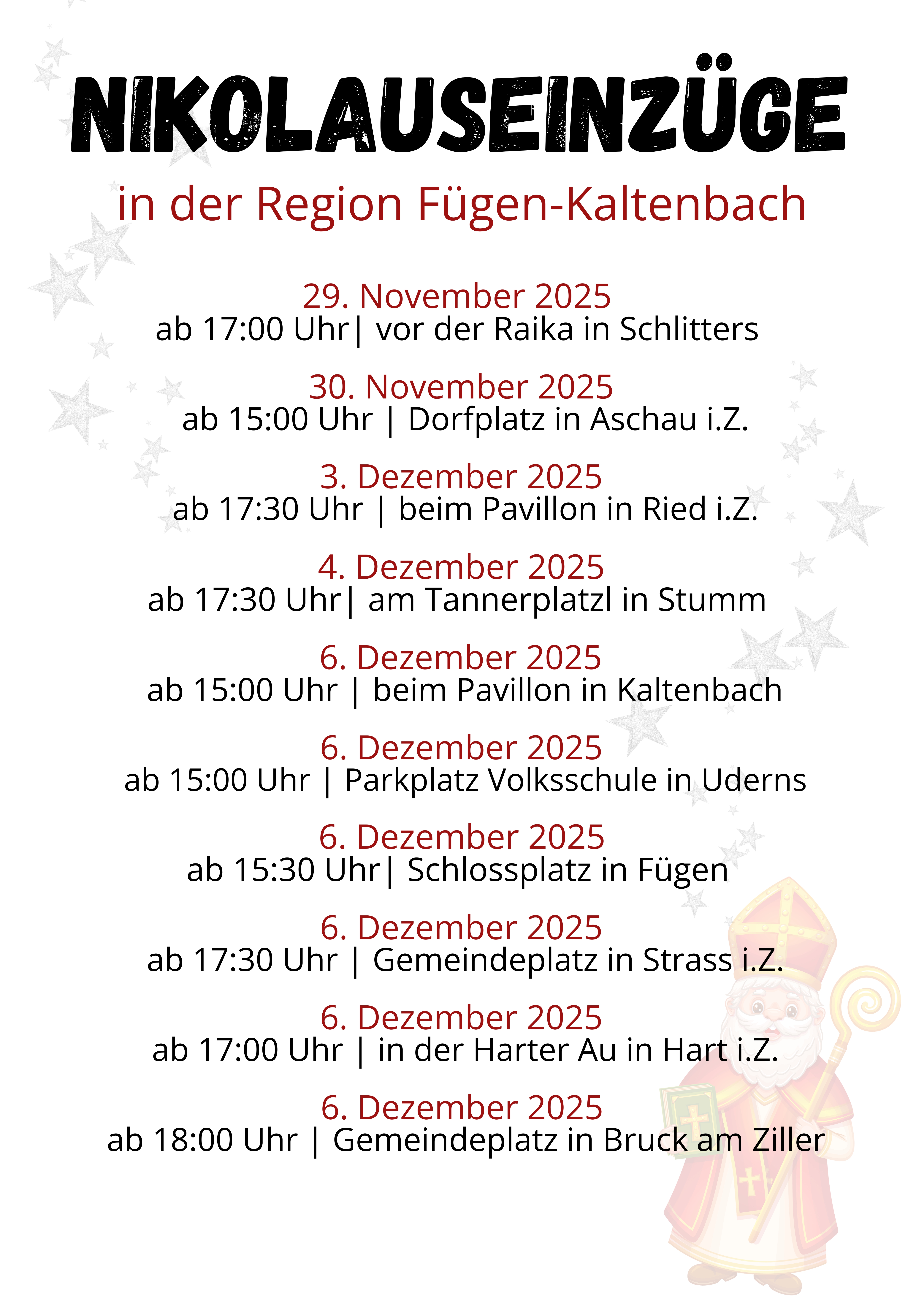 Der Nikolaus ist wieder in der Ferienregion Fügen-Kaltenbach unterwegs. Er und seine Engerl freuen sich auf euren Besuch.